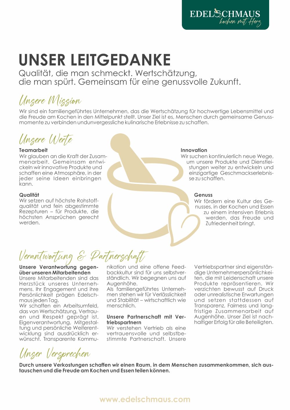 Wertschätzung für Lebensmittel, die Verbindung von Menschen durch das Kochen und das Erleben intensiver Genussmomente – das ist es, was uns antreibt und motiviert.   Wir möchten, dass jeder die Freude am Kochen und Genießen entdeckt und teilt.